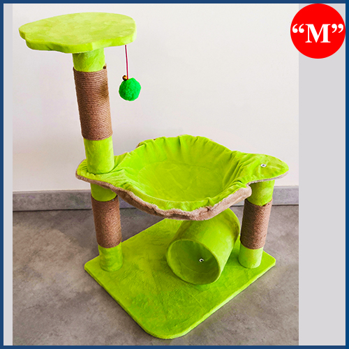• TIRA GRAFFI "Medium" VERDE - Base 45 x 37 cm - H 69 cm - Tira Graffi in legno rivestito in tessuto in peluche, con colonne rivestita in corda. Con amaca e tunnel, nella pedana superiore c'è attaccata una pallina e un campanello, per l'allenamento e il il divertimento del gatto. DISPONIBILE in altri coolori - Cartone con un singolo tira graffi. Composto da materiali non nocivi per gli animali.