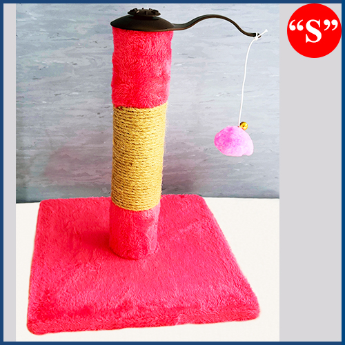 Nella parte superiore c'è un perno in plastica ruotante, a cui è attaccata una pallina e un campanello, per l'allenamento e il il divertimento del gatto.